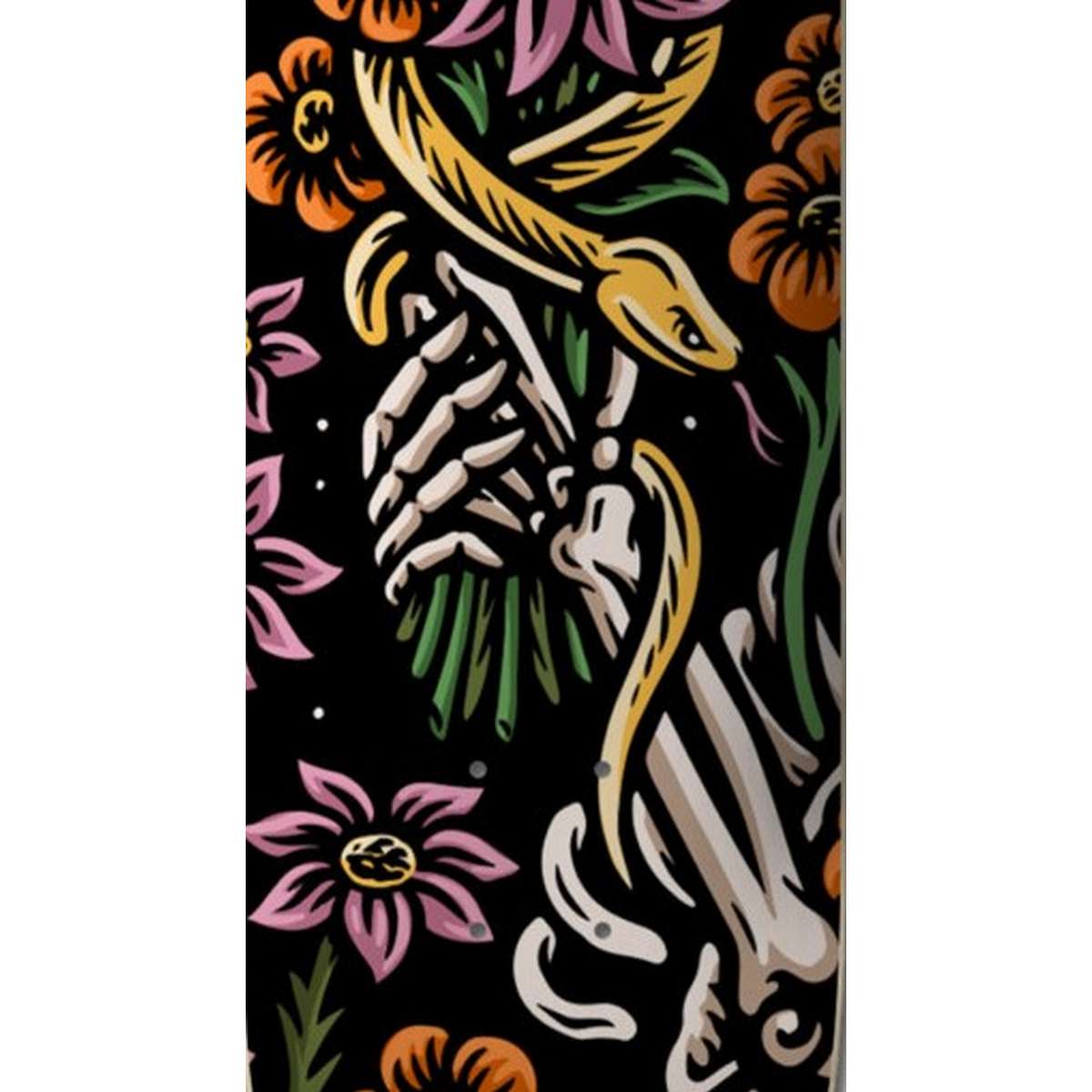 A skeleton gracefully holds a Element x Timber! Bouquet of multi-colored flowers on the underside of the Timber! Late Bloomers Element x Timber! Bouquet Skateboard Deck, presented by Timber!, aka Chad Eaton. Featuring 7-ply maple wood construction, this deck is high-grade and high-performance.