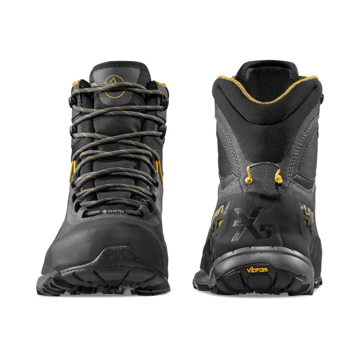 Technical hiking and backpacking boot ideal for use on via ferrata and technical approach routes on hard and rocky terrain, even with heavy backpacks. Comfortable, lightweight, waterproof and breathable, it adopts the GORE-TEX Extended Comfort membrane. The Look & Feel TX Series derives from the approach line and is very lightweight and comfortable thanks to the highly abrasion resistant mesh uppers. The protective, abrasion resistant rubber rand and toecap guarantees maximum protection, while the 3D Flex System allows for maximum mobility and safety on holds. TX S is a structured and protective boot thanks to the stabilizing insole that allows prolonged use. The super sticky Vibram Megagrip sole with pronounced heel and Hiking-Oriented lugs with differentiated thickness favors braking while descending and uphill hold. The perfect product for demanding hikers.