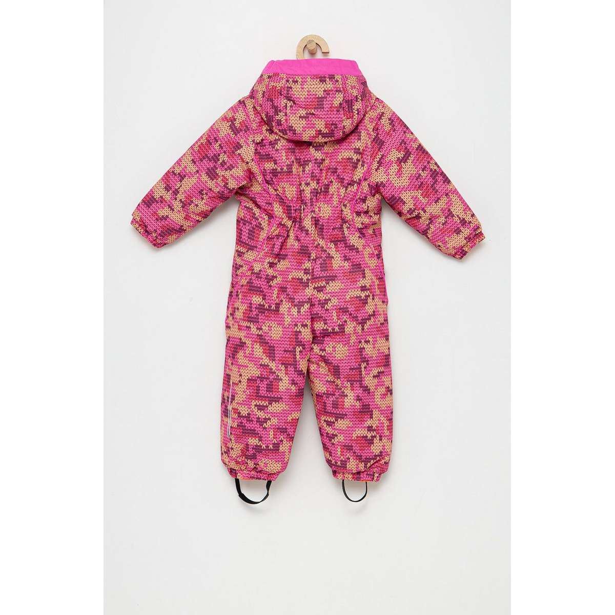 Functional one piece suit for the little babies to pretect them aginst cold when playing in the snow. The padding maintains warmth without compromising freedom of movement when playing in the snow. The special layer placed between the layers of fabric, combined with partially taped seams, provides protection against bad weather. Fixed hood, elastic cuffs and bottom provide a protection against the entrance of snow. The warm highloft interior gives a pleasant feeling of comfort and warmth.