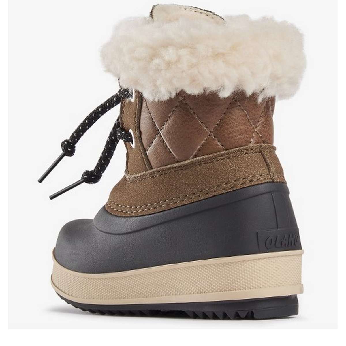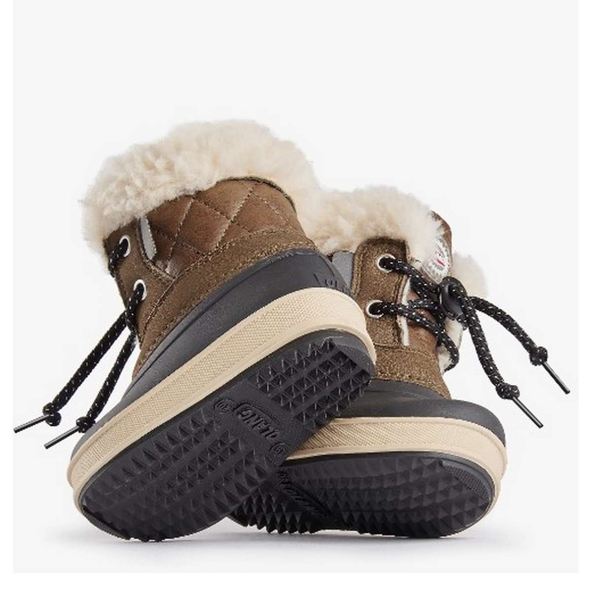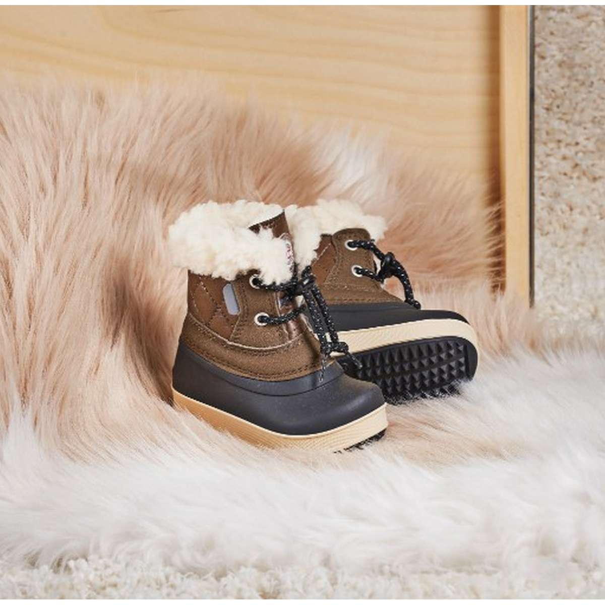 This funky kids snow boot, combines faux suede/leather in the upper with an adjustable front and an easy to handle fastening. The cute cosy cuff leads to the warm wool lining. The Ape is available in various adorable colour options. This sweet boot has a lightweight flexible sole unit with a durable high gripping base great for keeping little ones happy.