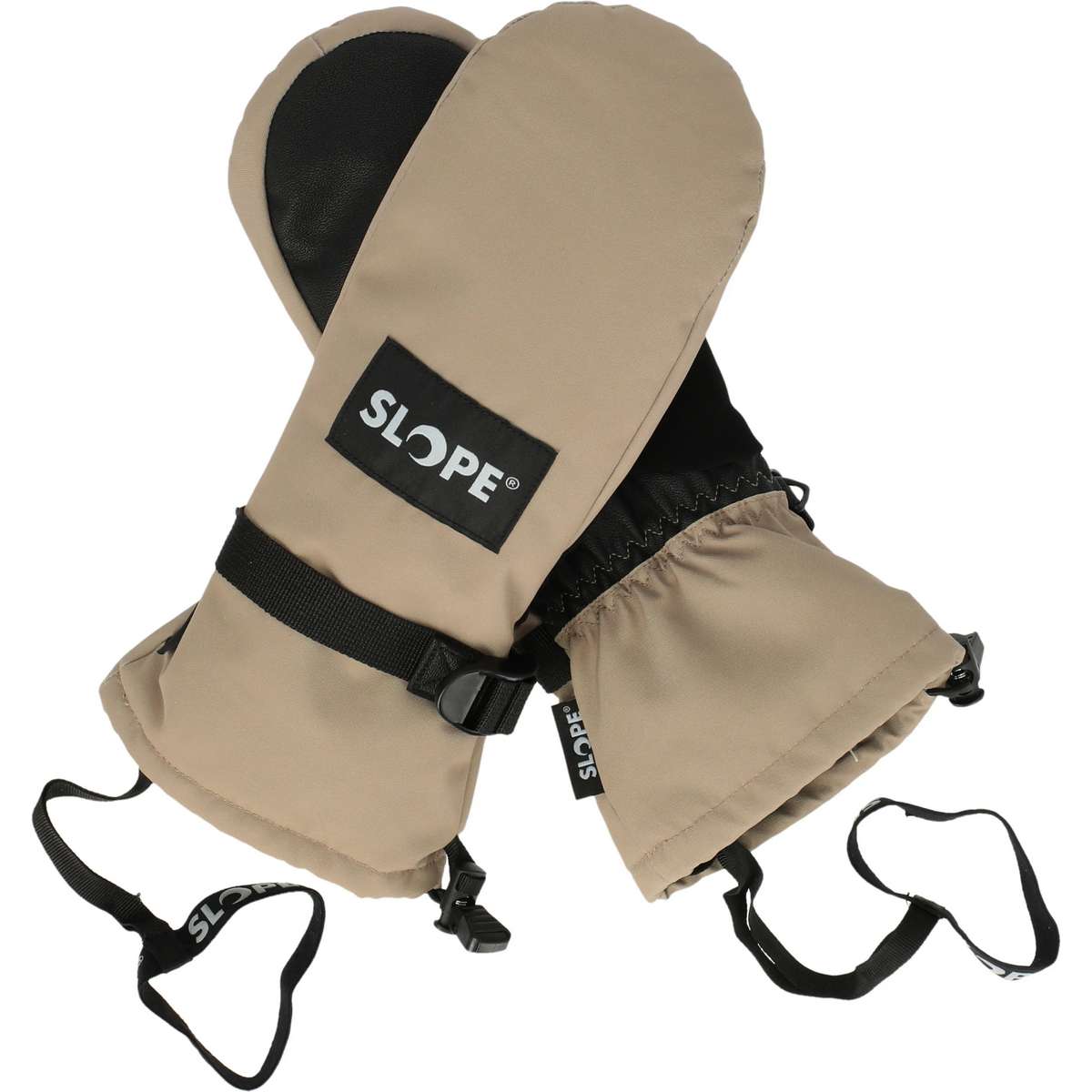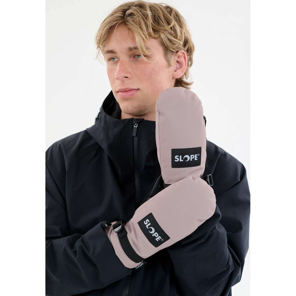 The "Gideon" mittens from SLOPE are the perfect equipment for your adventures in the snow. They are waterproof and made from a combination of functional materials that keep your hands pleasantly warm and dry. They also have a water-repellent coating. The outer material on the back of the hand is made from 100% Oxford polyester and the non-slip palm is made from 50% polyester and 50% polyurethane. The soft fleece lining and polyester padding provide lasting warmth. Smart details such as fastening straps and adjustable wrist areas make these gloves particularly functional companions!