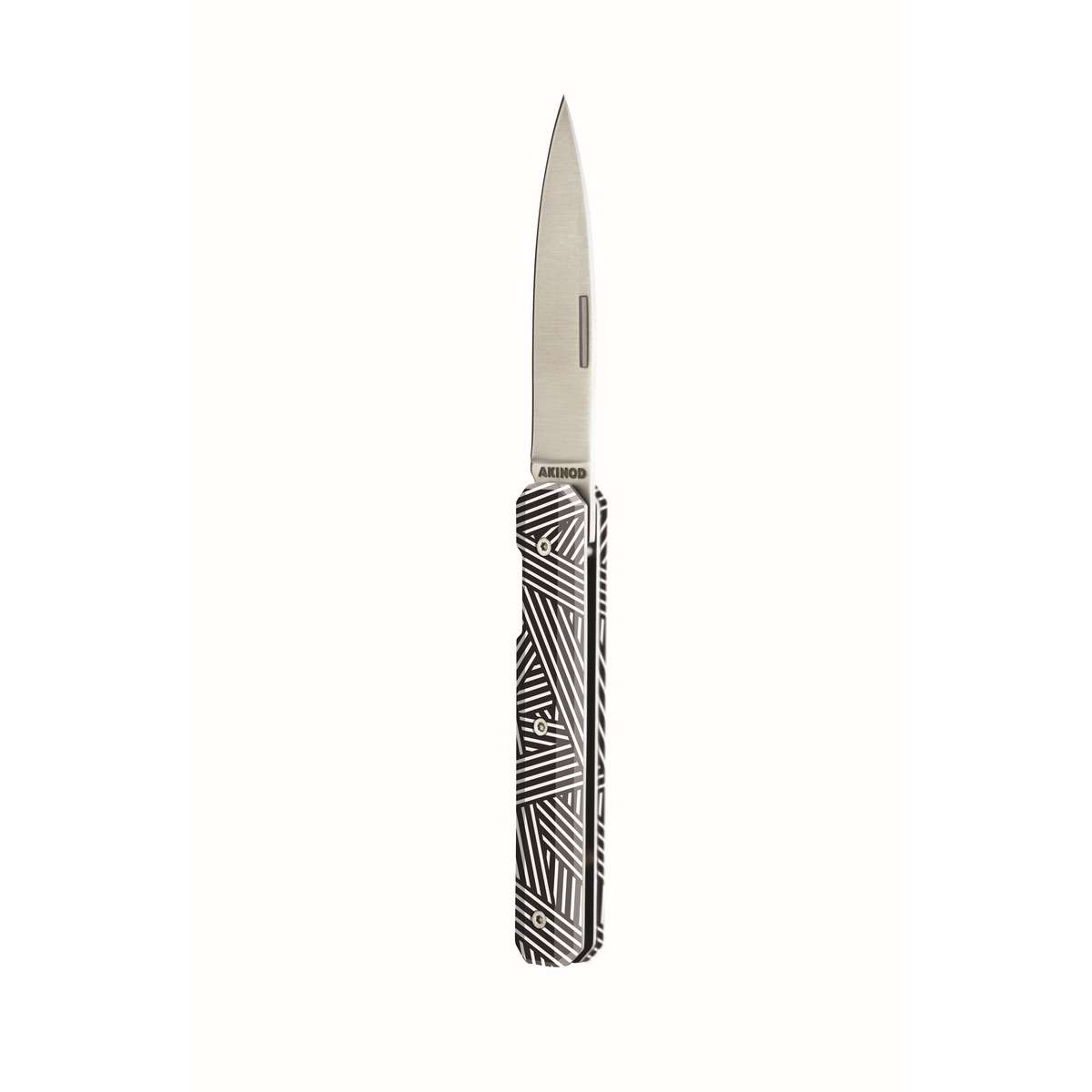 The hibiscus, a graceful and aromatic flower, adorns the handle of this Akinod knife. Revel in its intense colours as well as its sharp, folding blade during your time in the kitchen.