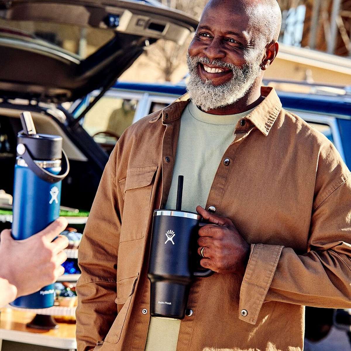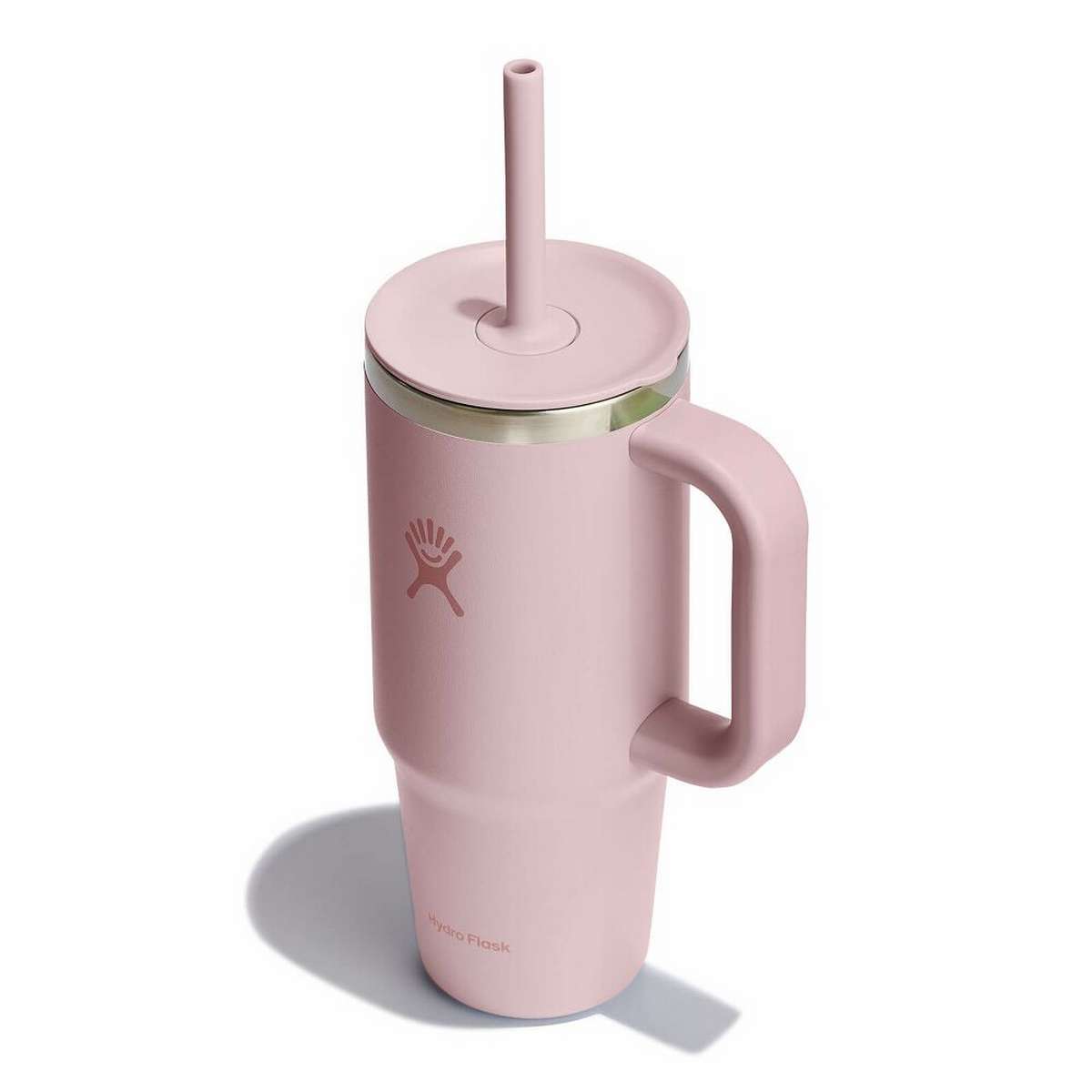 The insulated Hydro Flask 24 oz (710 ml) Travel Tumbler cup is here to hydrate more and refill less. The insulation can keep drinks cold for hours, and the durable handle makes it easy to take along anywhere. The 24 oz (710 ml) size stainless steel tumbler bottle can go anywhere, even fitting most cupholders. Cold stays cold, and the flexible straw is easy to sip any which way.