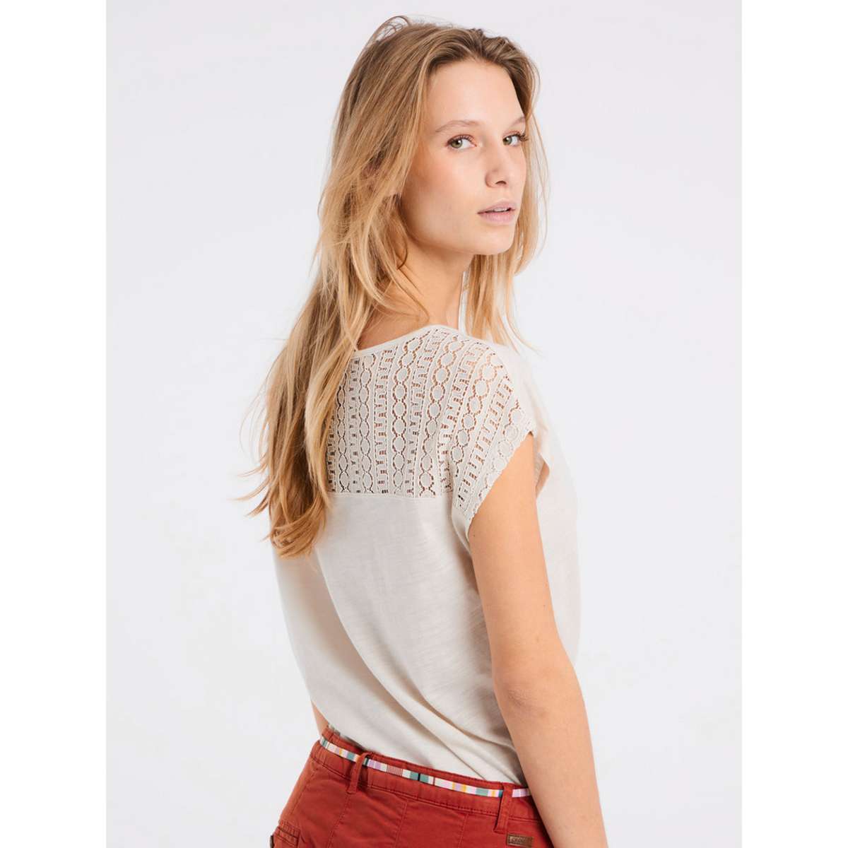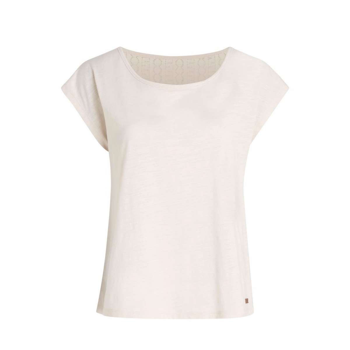 Meet the gorgeous PRTNICE by Protest. This T-shirt is made from a cotton and jersey slub blend. Simple and flirty, this T-shirt has a lace insert at the back. A summer top you simply need, the PRTNICE by Protest.