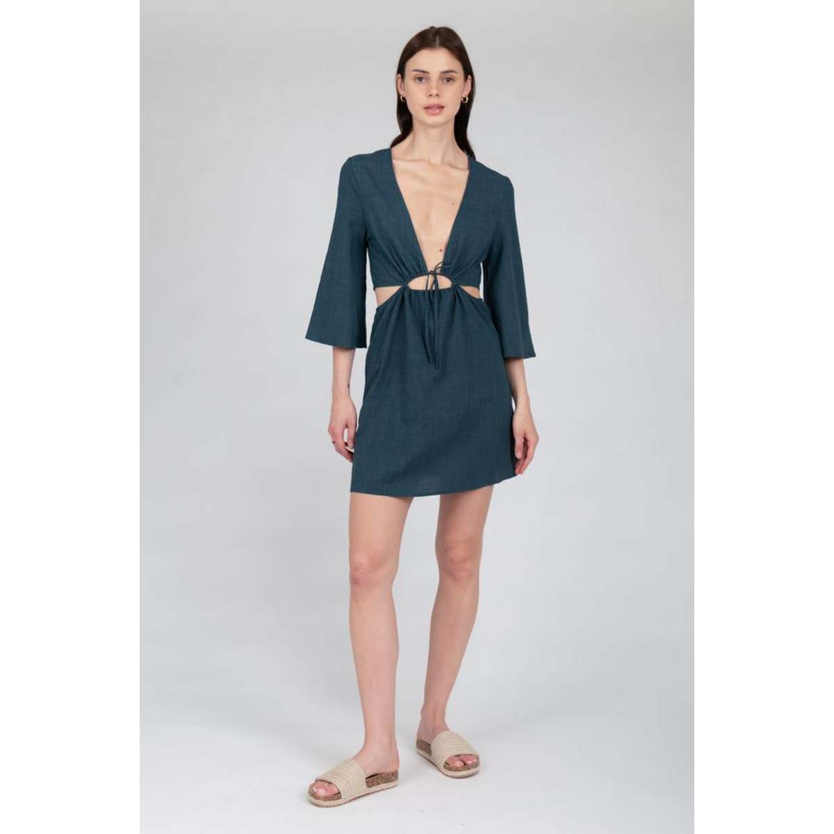 Short dress with wide sleeves and cut outs