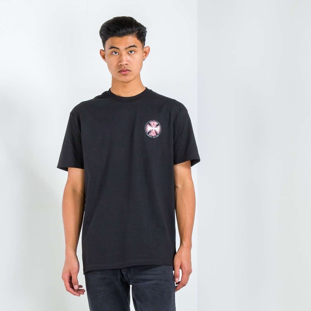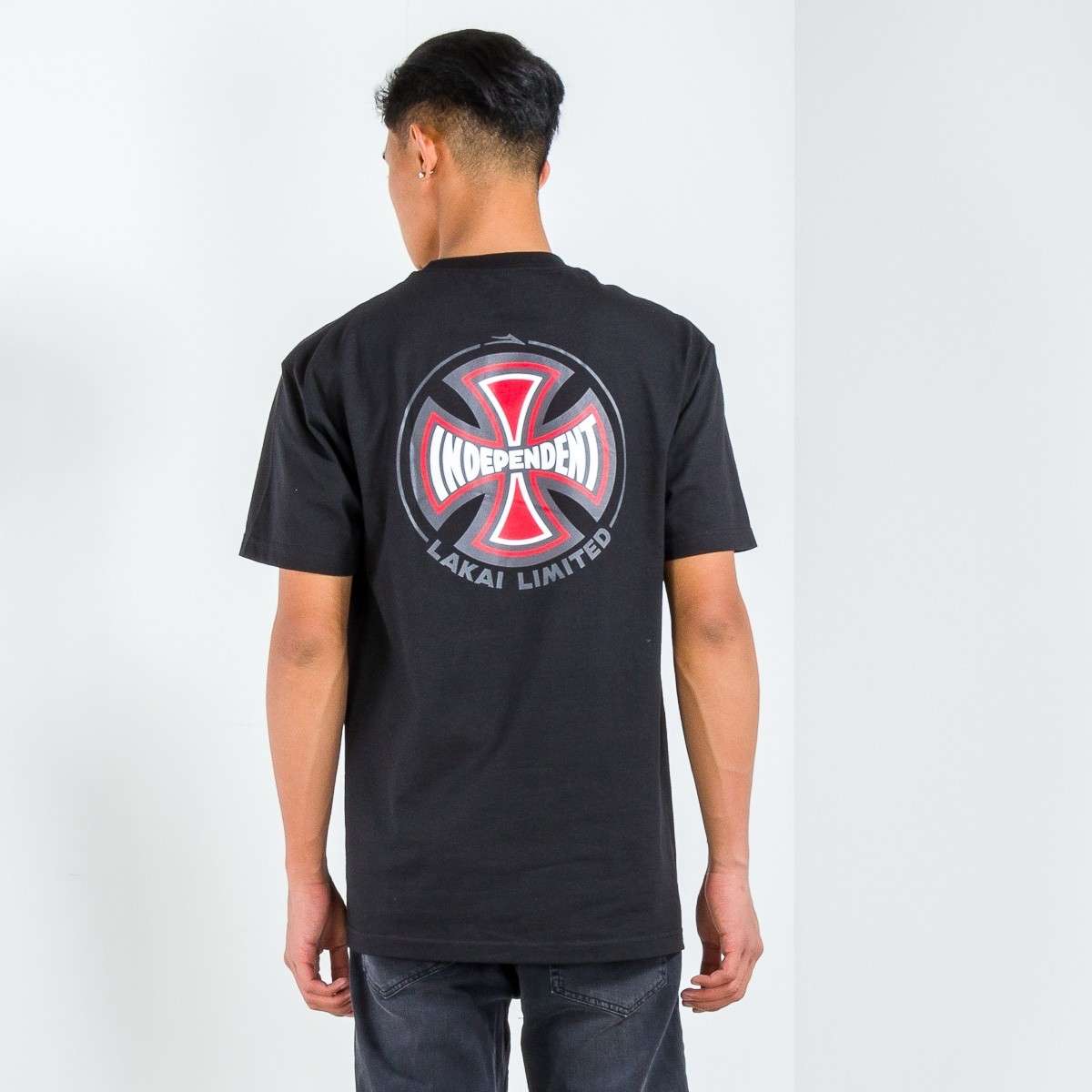 The Lakai x Independent Truck Co T-Shirt features the iconic Indy logo on Back and wearers left front chest. Set-in rib collar with shoulder-to-shoulder taping. Double-needle sleeve and bottom hems. Preshrunk to minimize shrinkage