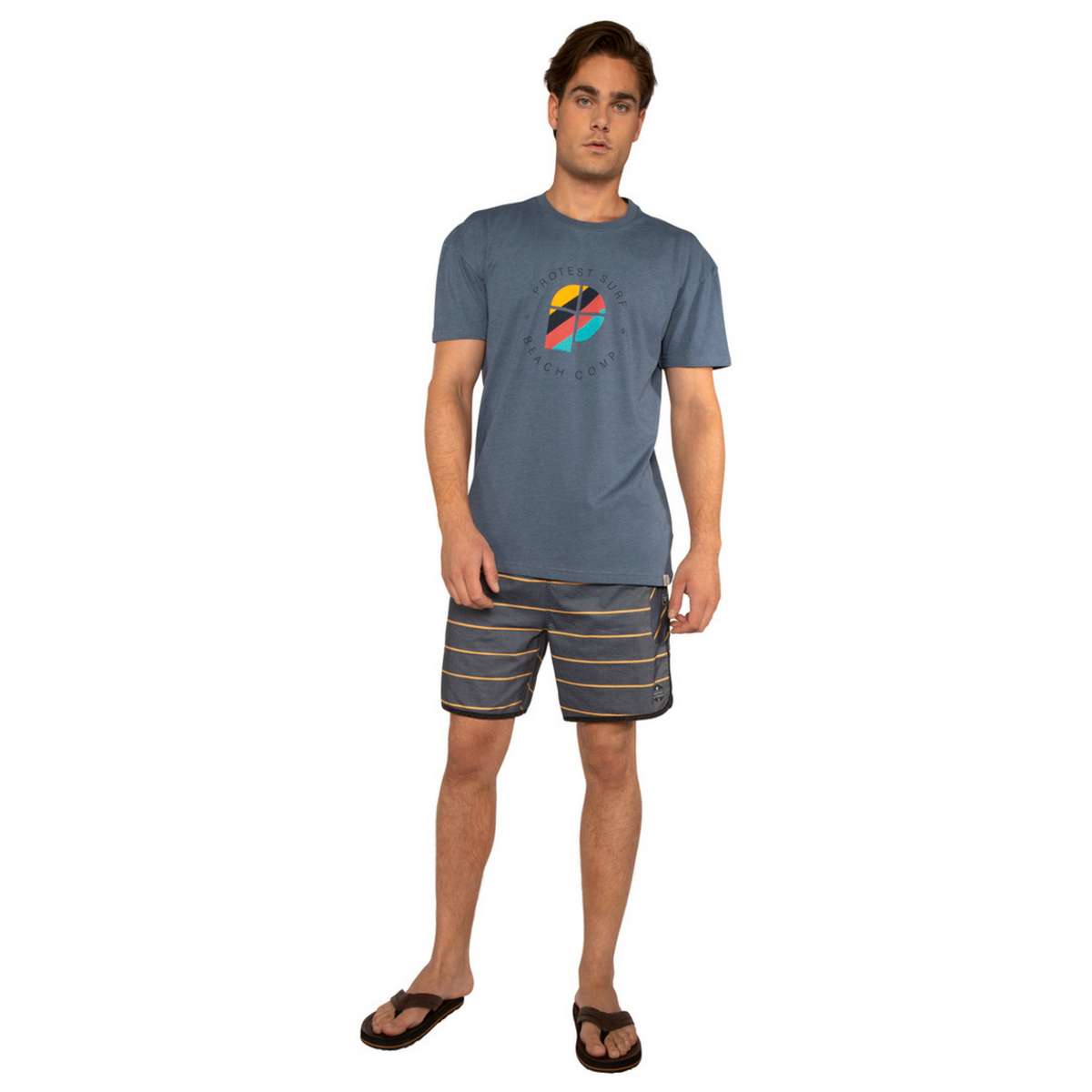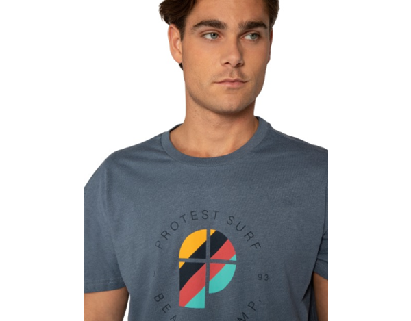 Check out the Pro by Protest. This great tee is simple and cool. Made from a cotton jersey blend, the T-shirt has a loose fit. It’s printed with a Protest logo and a circle of text. The perfect tee for every day of the summer, the Pro by Protest. This model is 1.85m and wears size L / UK 40.