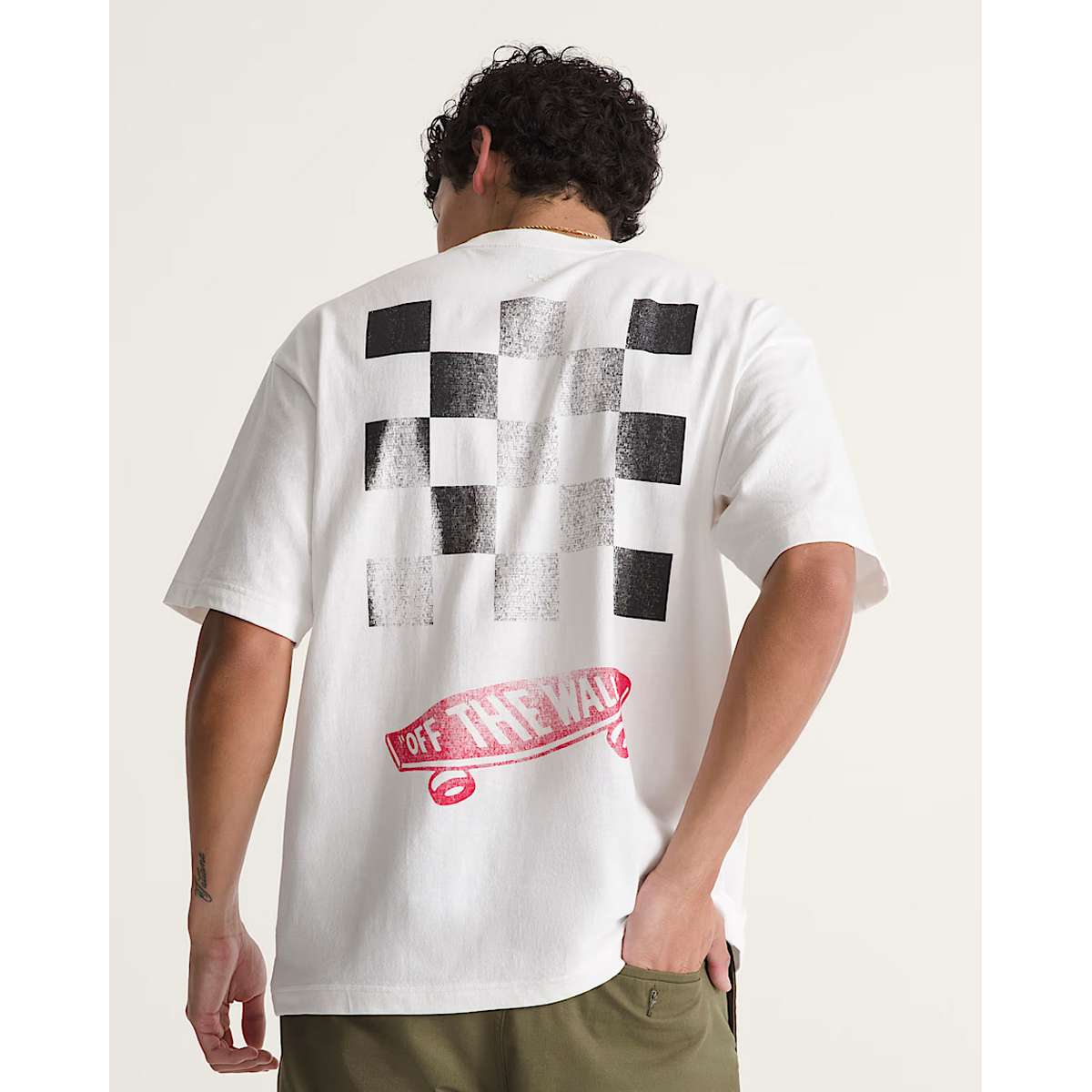 Loose-fitting cotton T-shirt with iconic checkerboard and skateboard graphics.