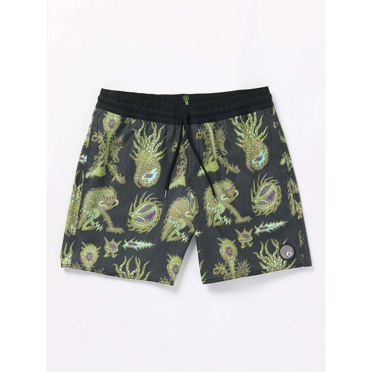 These Featured Artist trunks are more than just swimwear. They are a canvas for the incredible art of Tetsunori Tawaraya. Our Stone Hemp Stretch blend of REPREVE® Recycled fiber, polyesters, cotton, and elastane, make these swim trunks comfortable with a flexible fit. Convenient side and rear pockets make these swim shorts functional when not in the water too. But what truly sets them apart is the stunning artwork of Tetsunori Tawaraya, a Japanese artist and musician whose style is infectious and inescapable, blending bright pops of color with detail print work and imaginative creatures from somewhere beyond your wildest science fiction imagination.