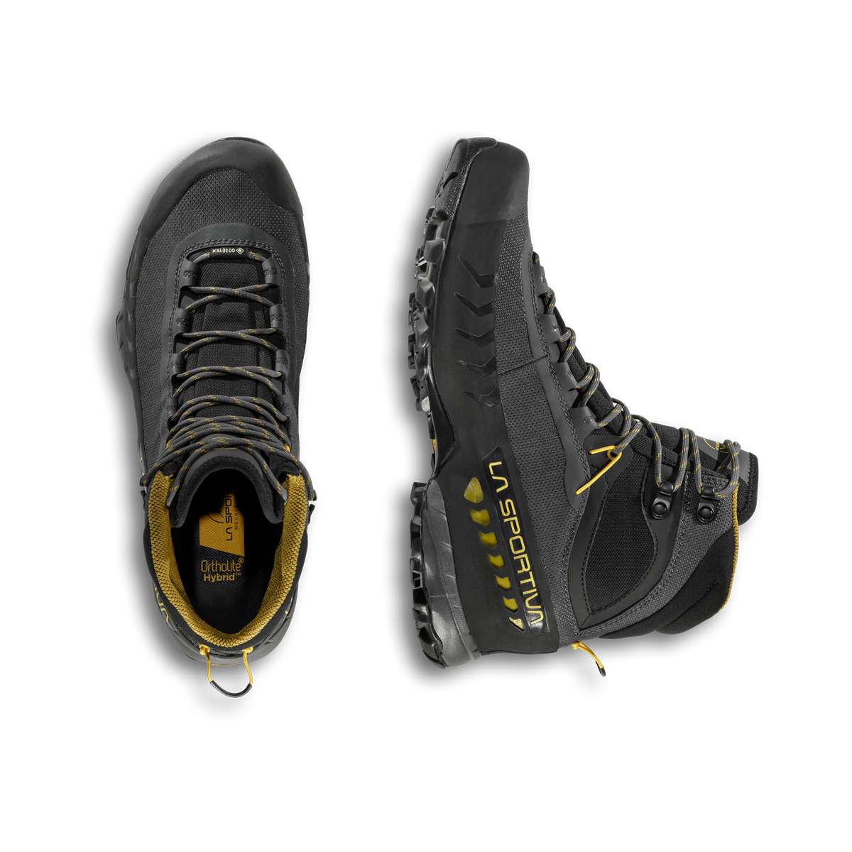 Technical hiking and backpacking boot ideal for use on via ferrata and technical approach routes on hard and rocky terrain, even with heavy backpacks. Comfortable, lightweight, waterproof and breathable, it adopts the GORE-TEX Extended Comfort membrane. The Look & Feel TX Series derives from the approach line and is very lightweight and comfortable thanks to the highly abrasion resistant mesh uppers. The protective, abrasion resistant rubber rand and toecap guarantees maximum protection, while the 3D Flex System allows for maximum mobility and safety on holds. TX S is a structured and protective boot thanks to the stabilizing insole that allows prolonged use. The super sticky Vibram Megagrip sole with pronounced heel and Hiking-Oriented lugs with differentiated thickness favors braking while descending and uphill hold. The perfect product for demanding hikers.