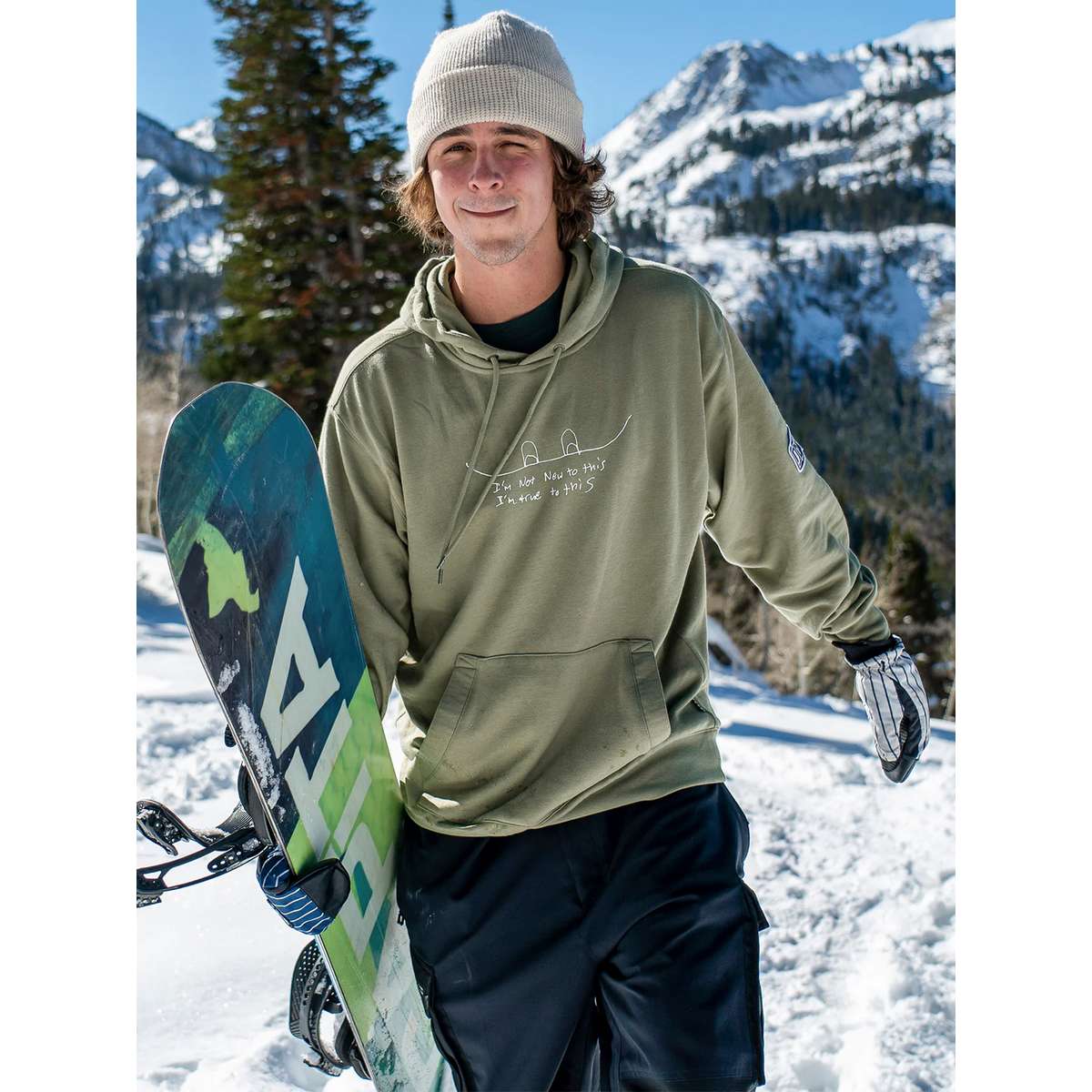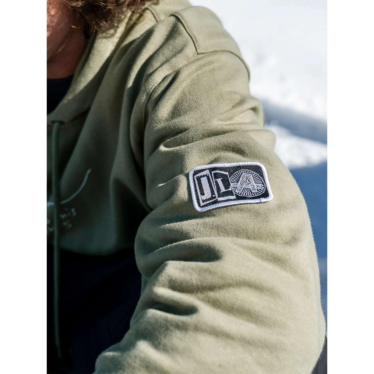 Like your favorite hoodie, but better. The D.I. Fleece in light military olive green features artwork J.L.A artwork. With features like a jersey-lined hood and thumb holes, it’s an elevated hoodie experience.