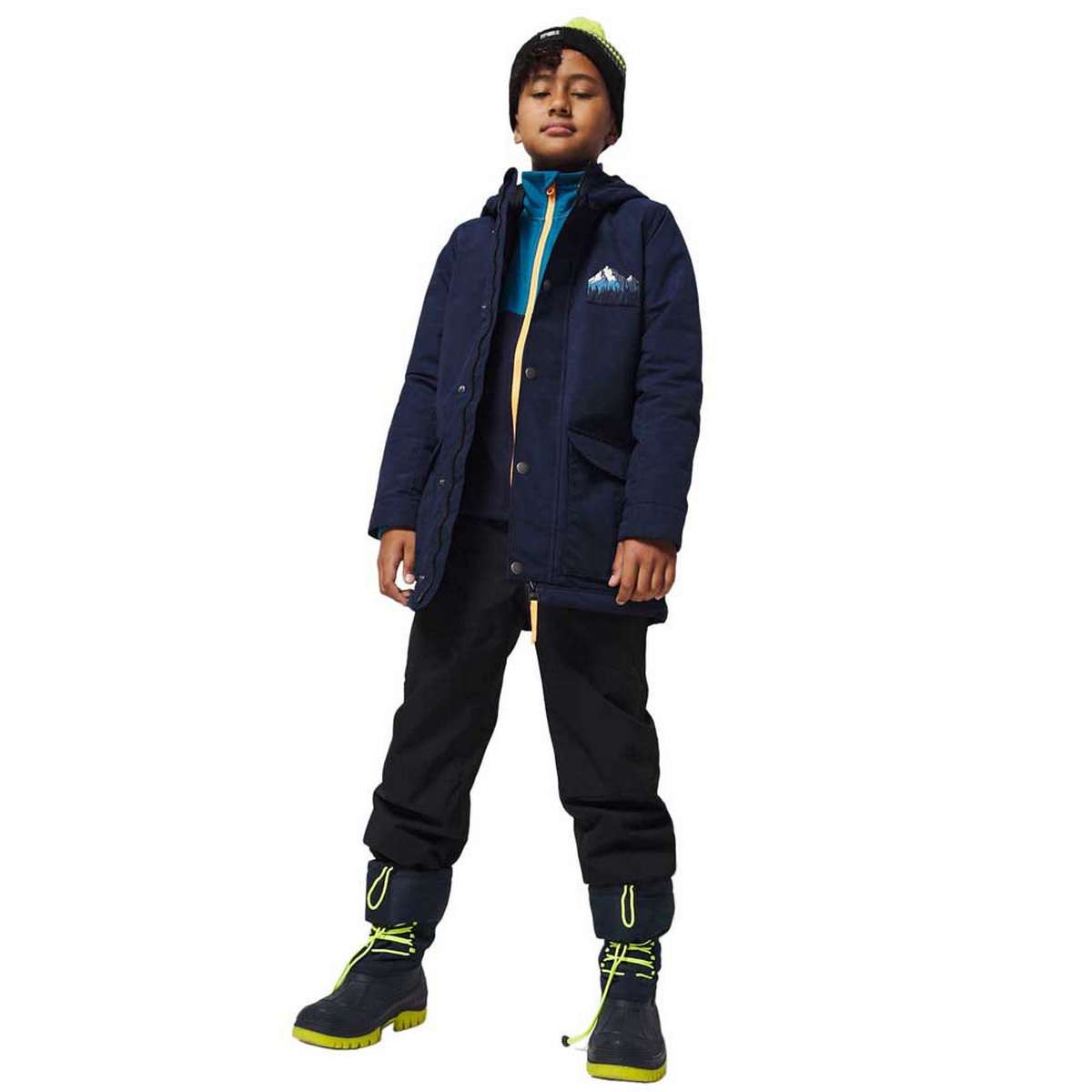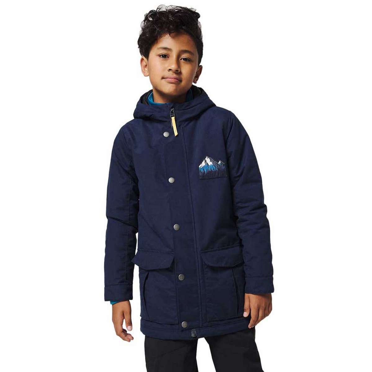 Get ready to charge on to the next adventure - no matter the weather - in the stylish Charger Parka. A shape and cut the grownups will be jealous of, with pop colour in the hood- to keep it playful - handy slimline pockets, a cool embroidered mountain graphic, this DWR coated, warm jacket is the ideal companion for you, all season long.