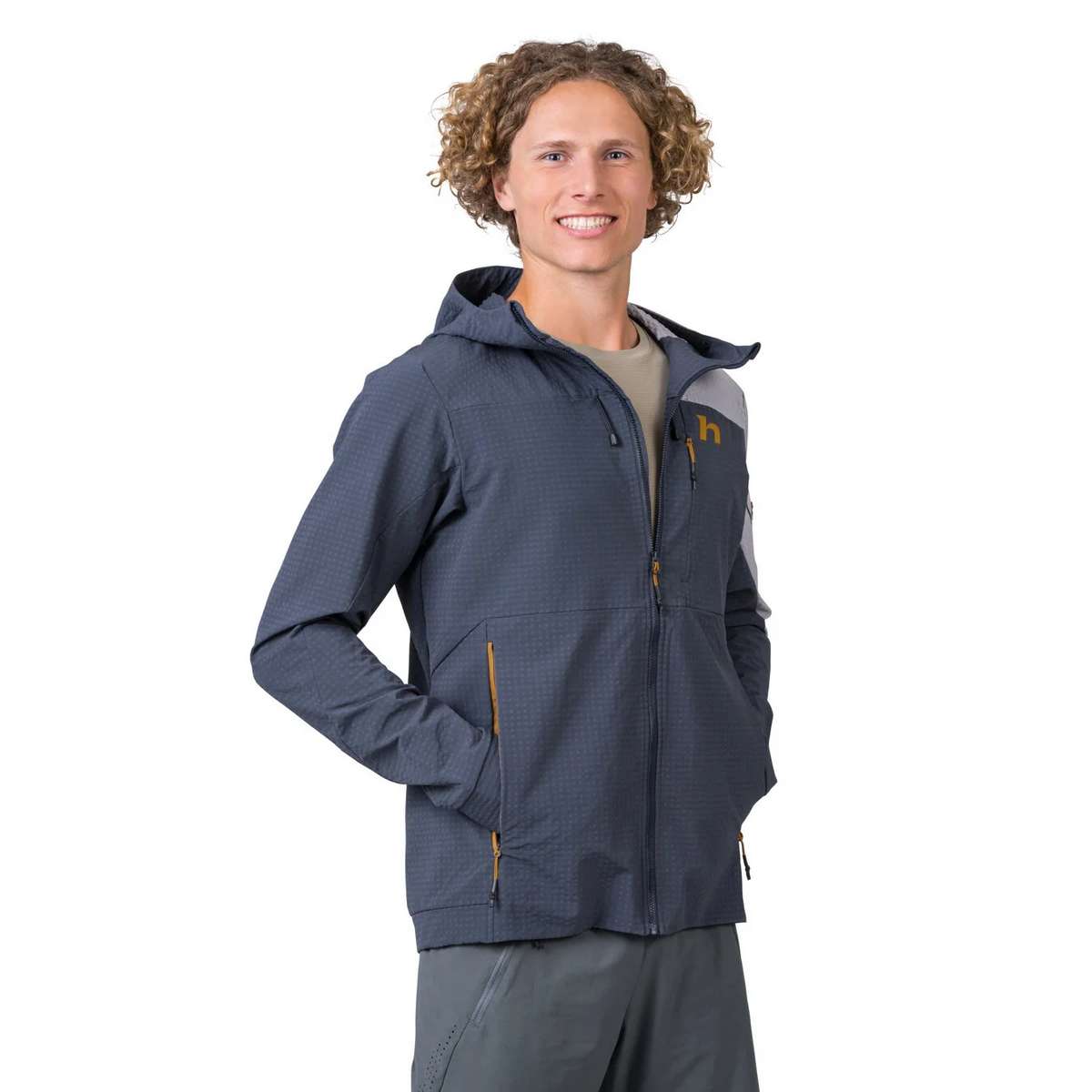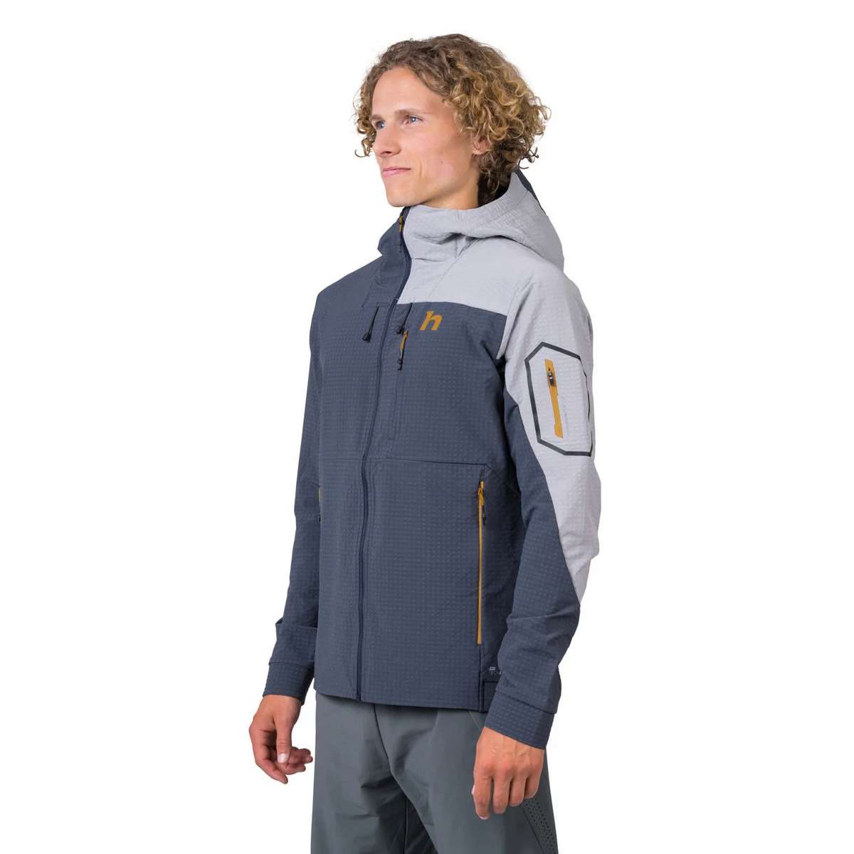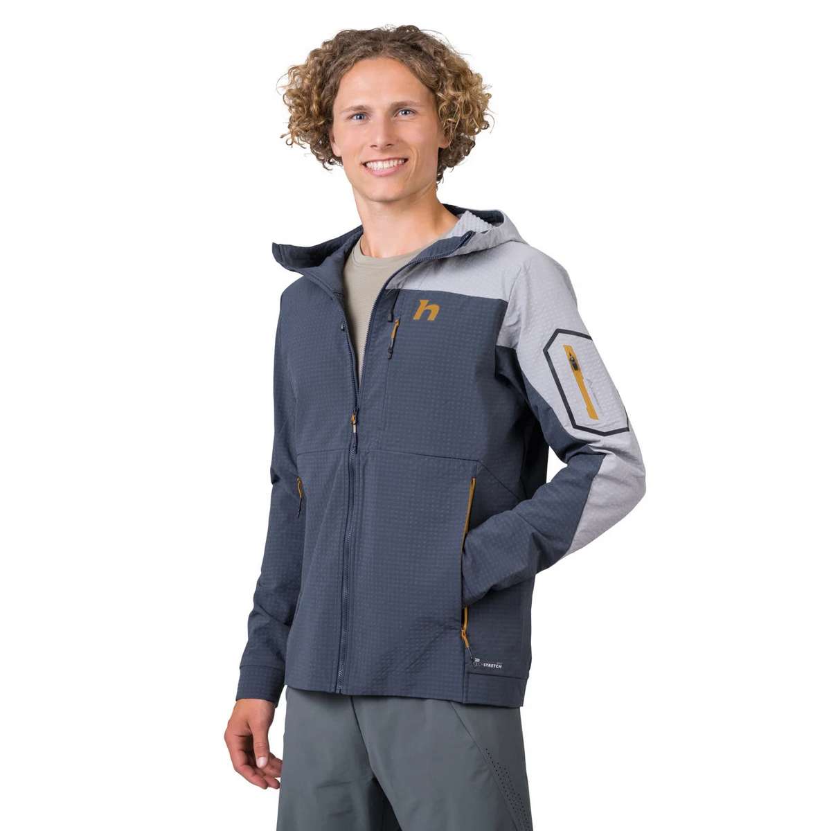 The combination of the special material and the jacket΄s ergonomic and sporty slim fit allows for comfortable movement even during higher intensity activities. The pre-shaped hood with drawcord regulation will be very practical in poor weather conditions. The pre-shaped sleeves finished with an elasticated cuff will fit well even if you΄re wearing a watch.