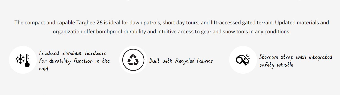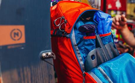 - Bottom reinforced loops for A-Frame ski/splitboard carry.