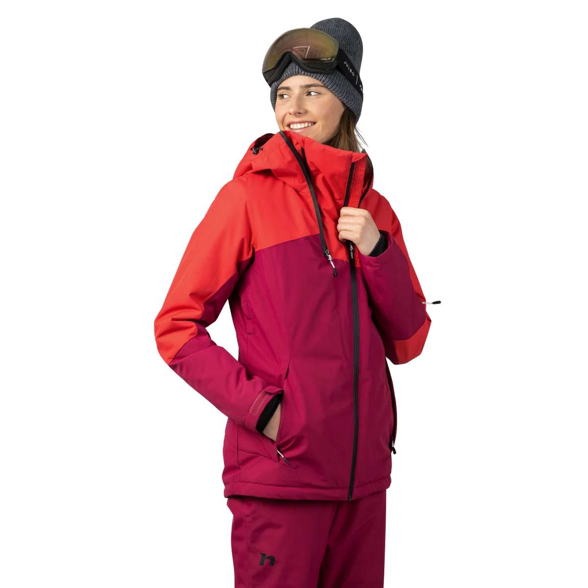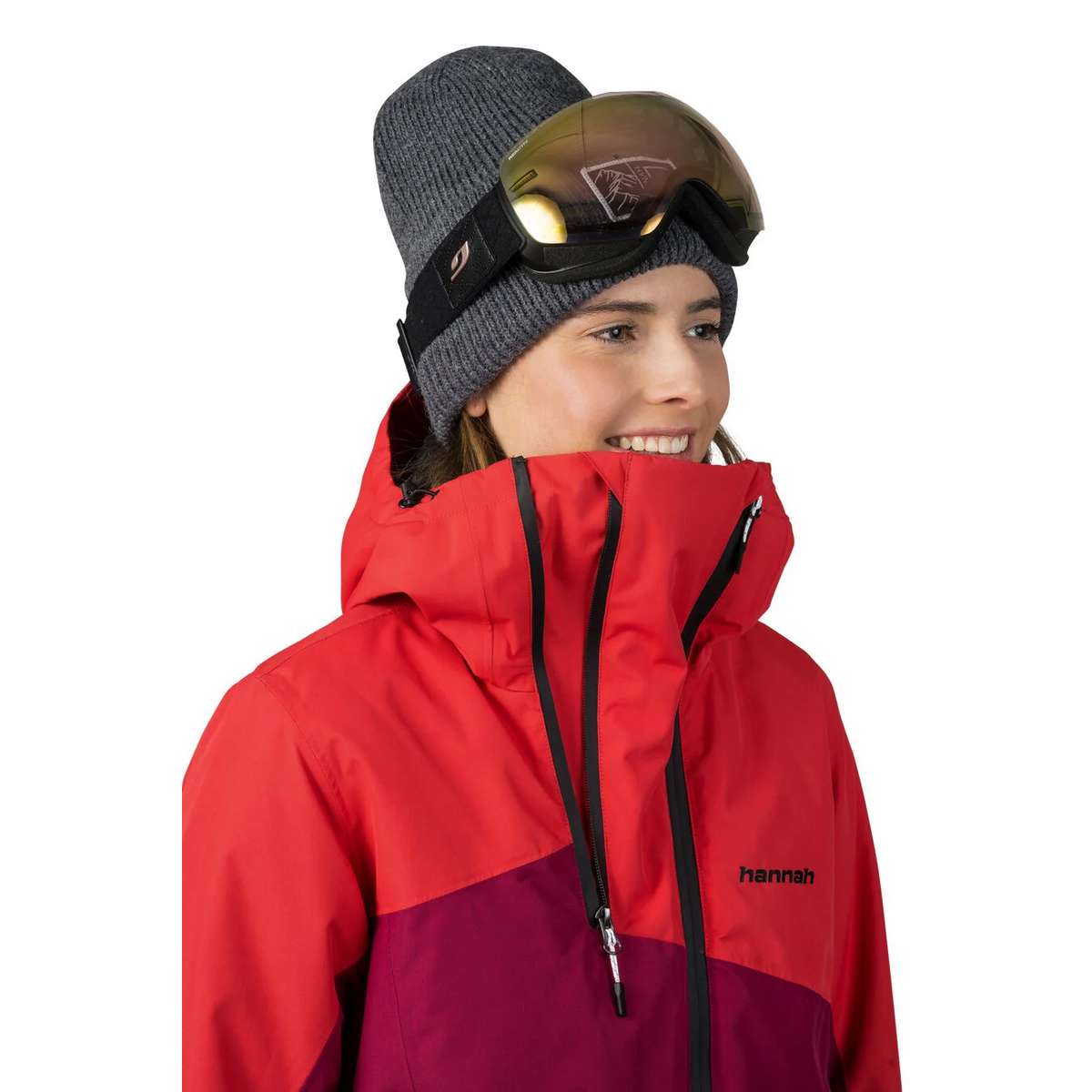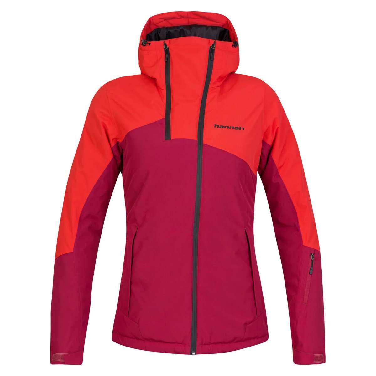 Youthful design and attractive colours are the hallmarks of the Hannah Maky Col ski jacket. The Resstex 10,000 membrane material combined with Duratherm Classic hollow fibre will ensure your perfect comfort in any conditions. The jacket is treated with a DWR finish. At first glance, the innovative collar design with the possibility of ventilation by means of a second zipper catches the eye of the jacket. The jacket includes all the necessary skiing attributes - snow collar at the waist, elastic cuffs in the sleeves, sleeve pocket for ski pass and inner goggle pocket, inner zipper pocket, ventilation in the armpits. The anatomically shaped sleeves and the possibility of regulation in the back of the hood and in the lower hem of the jacket also add to the user comfort.