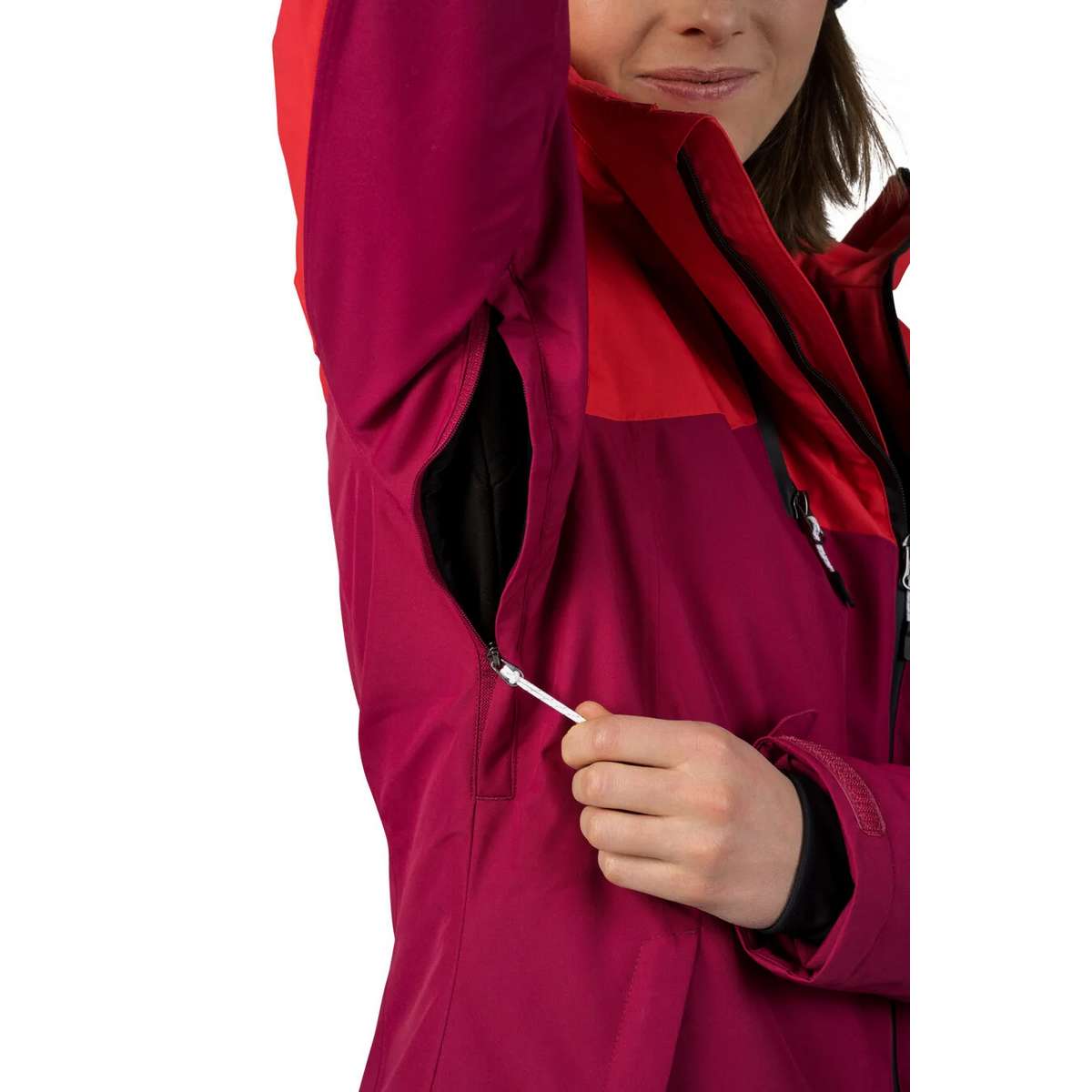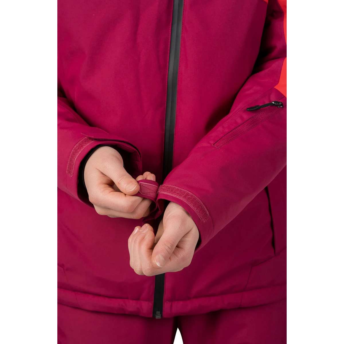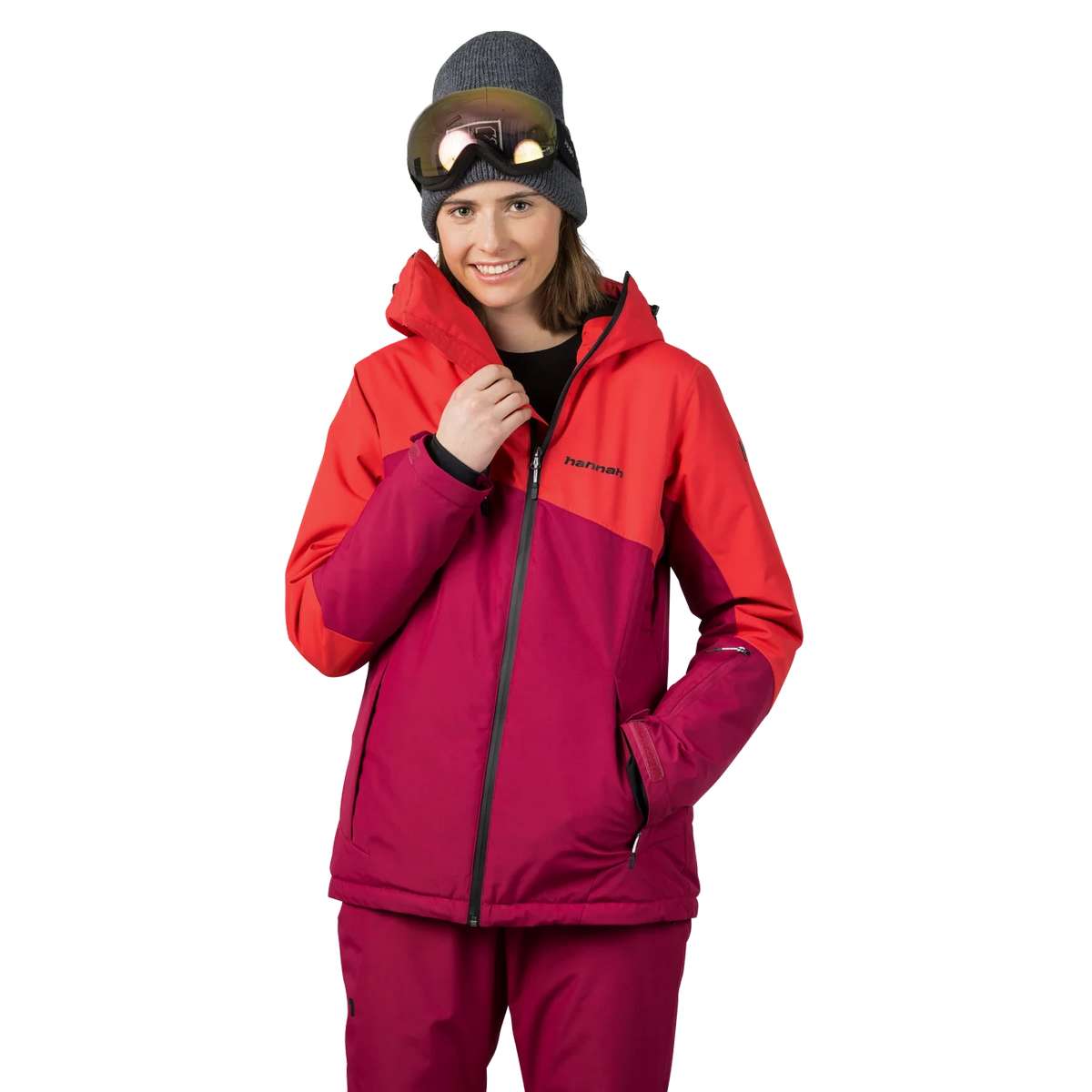 Youthful design and attractive colours are the hallmarks of the Hannah Maky Col ski jacket. The Resstex 10,000 membrane material combined with Duratherm Classic hollow fibre will ensure your perfect comfort in any conditions. The jacket is treated with a DWR finish. At first glance, the innovative collar design with the possibility of ventilation by means of a second zipper catches the eye of the jacket. The jacket includes all the necessary skiing attributes - snow collar at the waist, elastic cuffs in the sleeves, sleeve pocket for ski pass and inner goggle pocket, inner zipper pocket, ventilation in the armpits. The anatomically shaped sleeves and the possibility of regulation in the back of the hood and in the lower hem of the jacket also add to the user comfort.