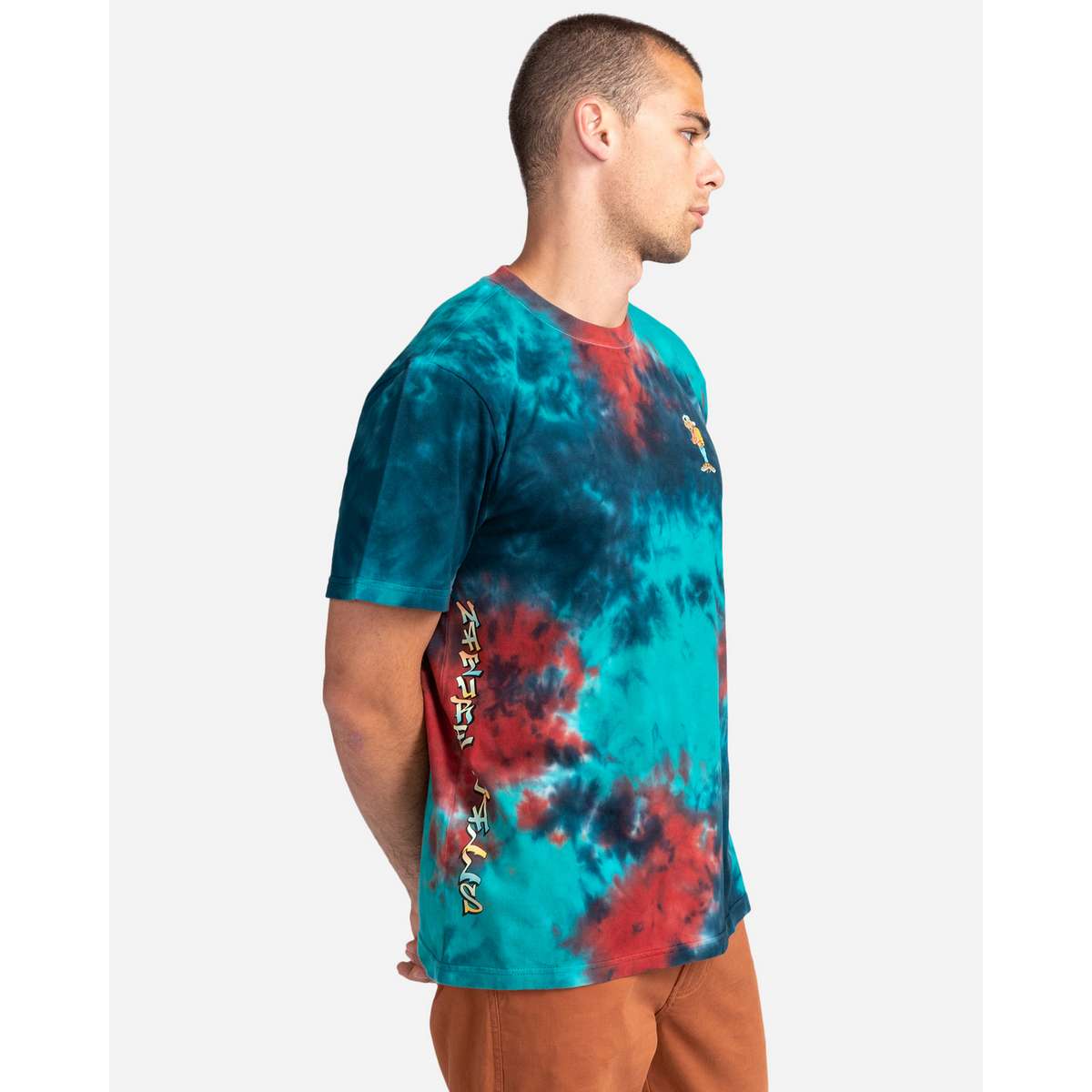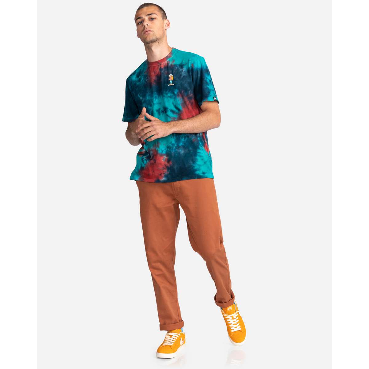 Features: Fabric : Cotton fabric (160 g/m2). Fit : Classic, comfortable regular fit. Neck : Crew neckline. Screen print design on front. Wash : Tie-dye treatment. Composition : 100% Cotton.